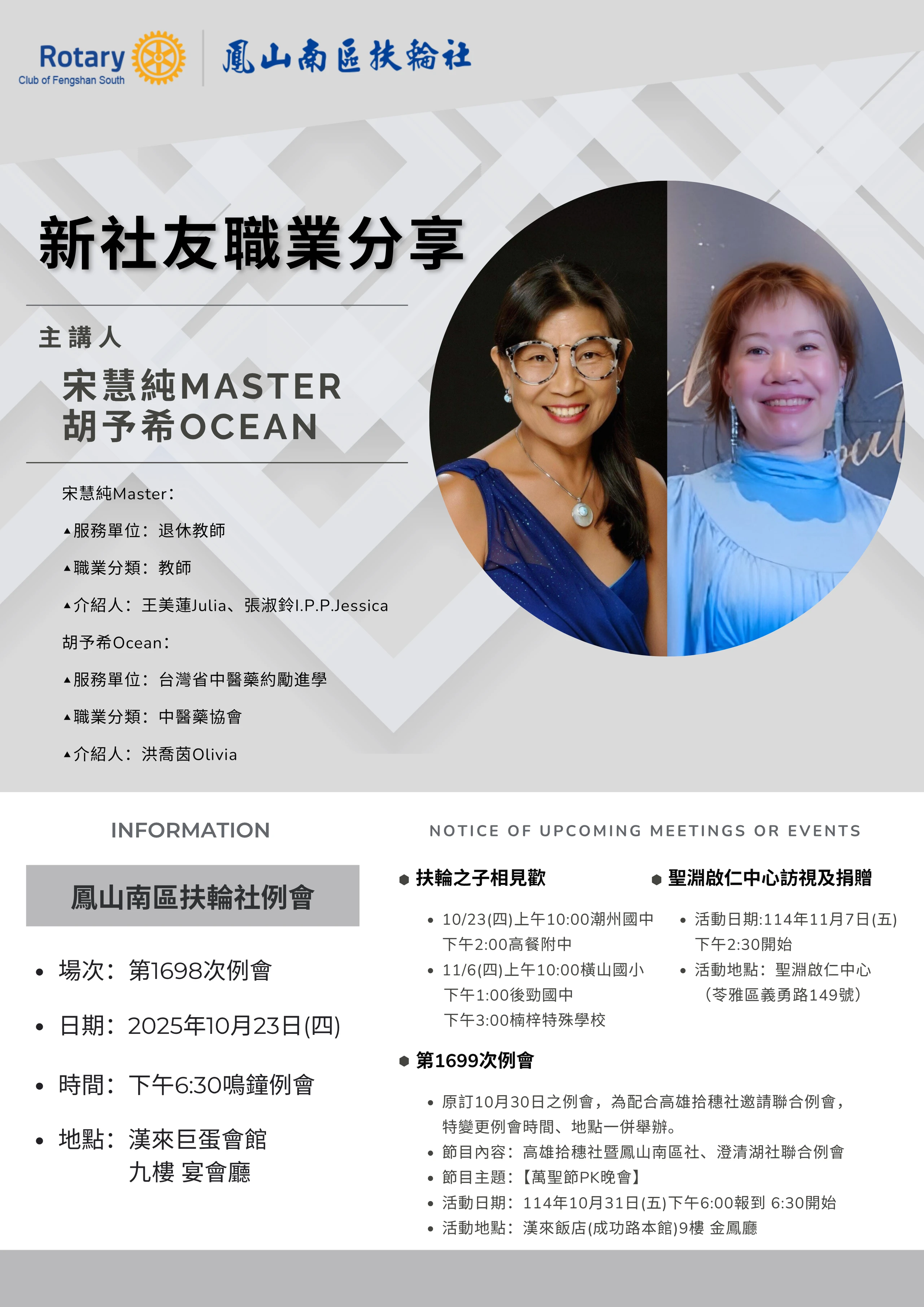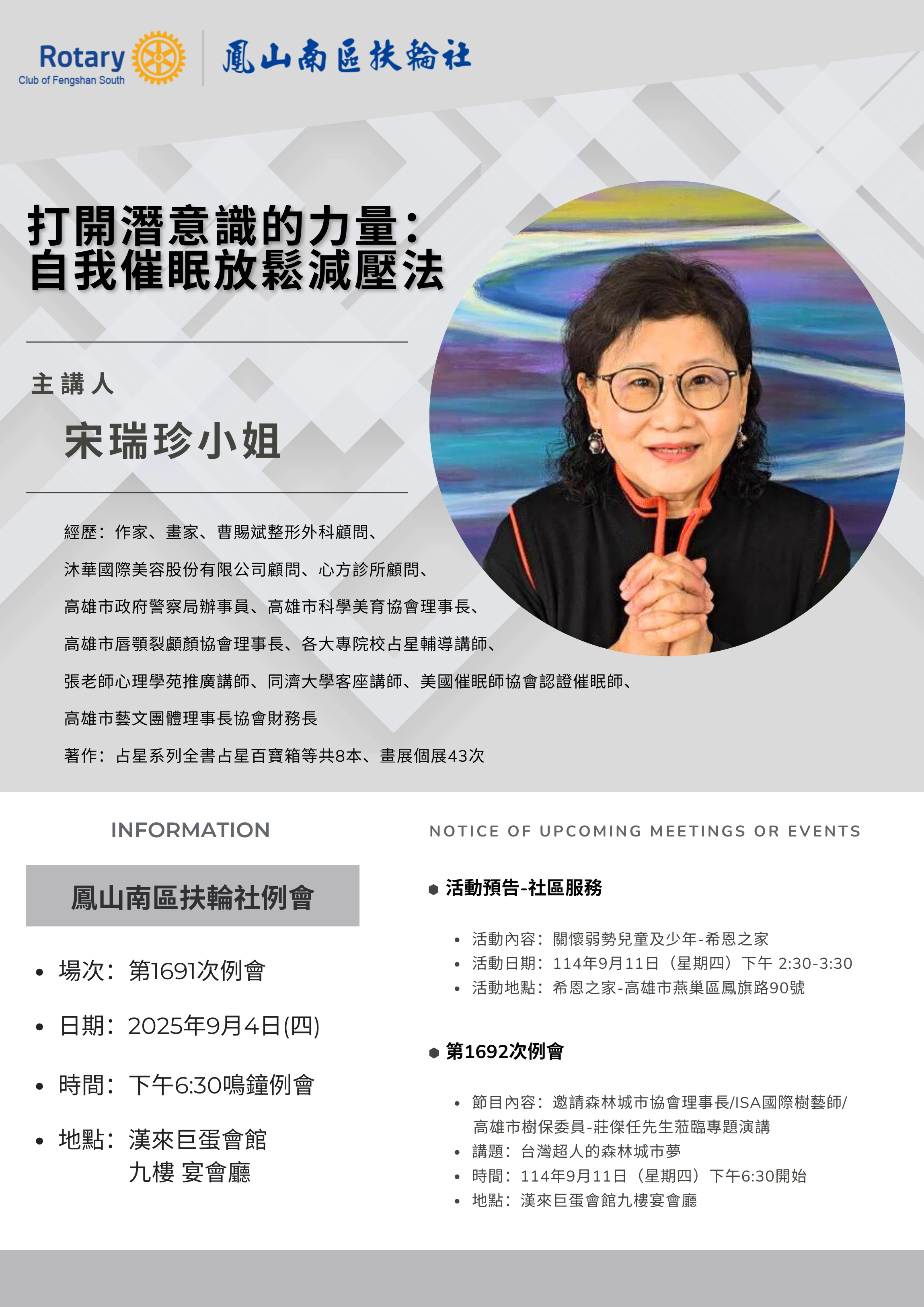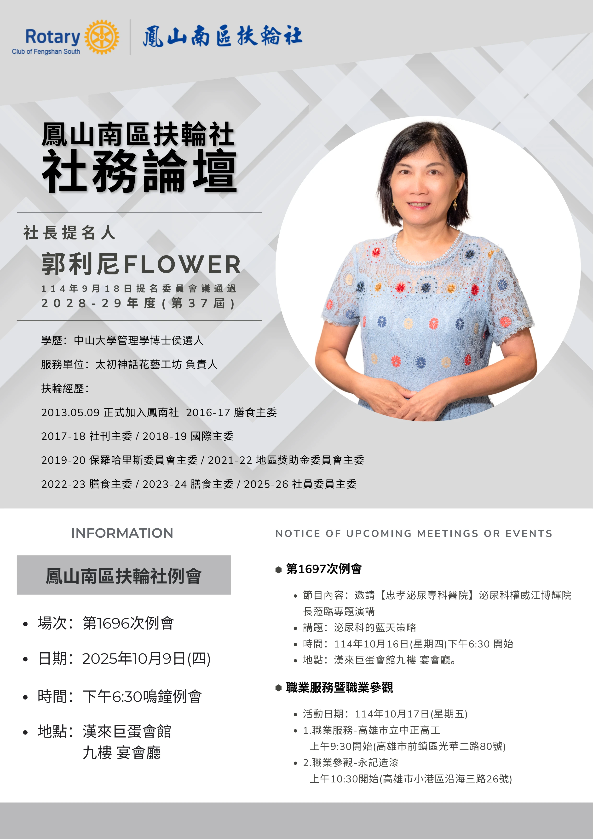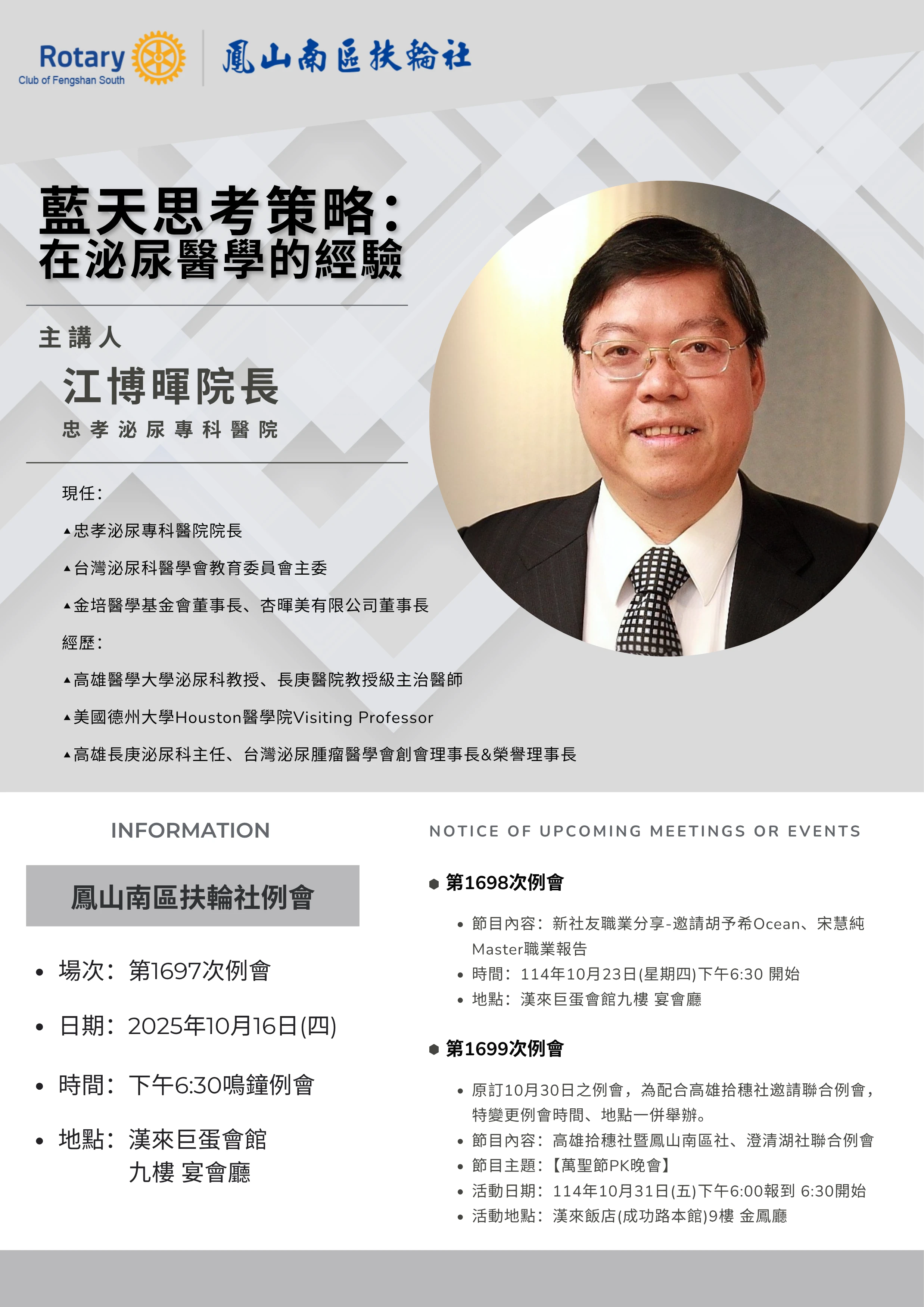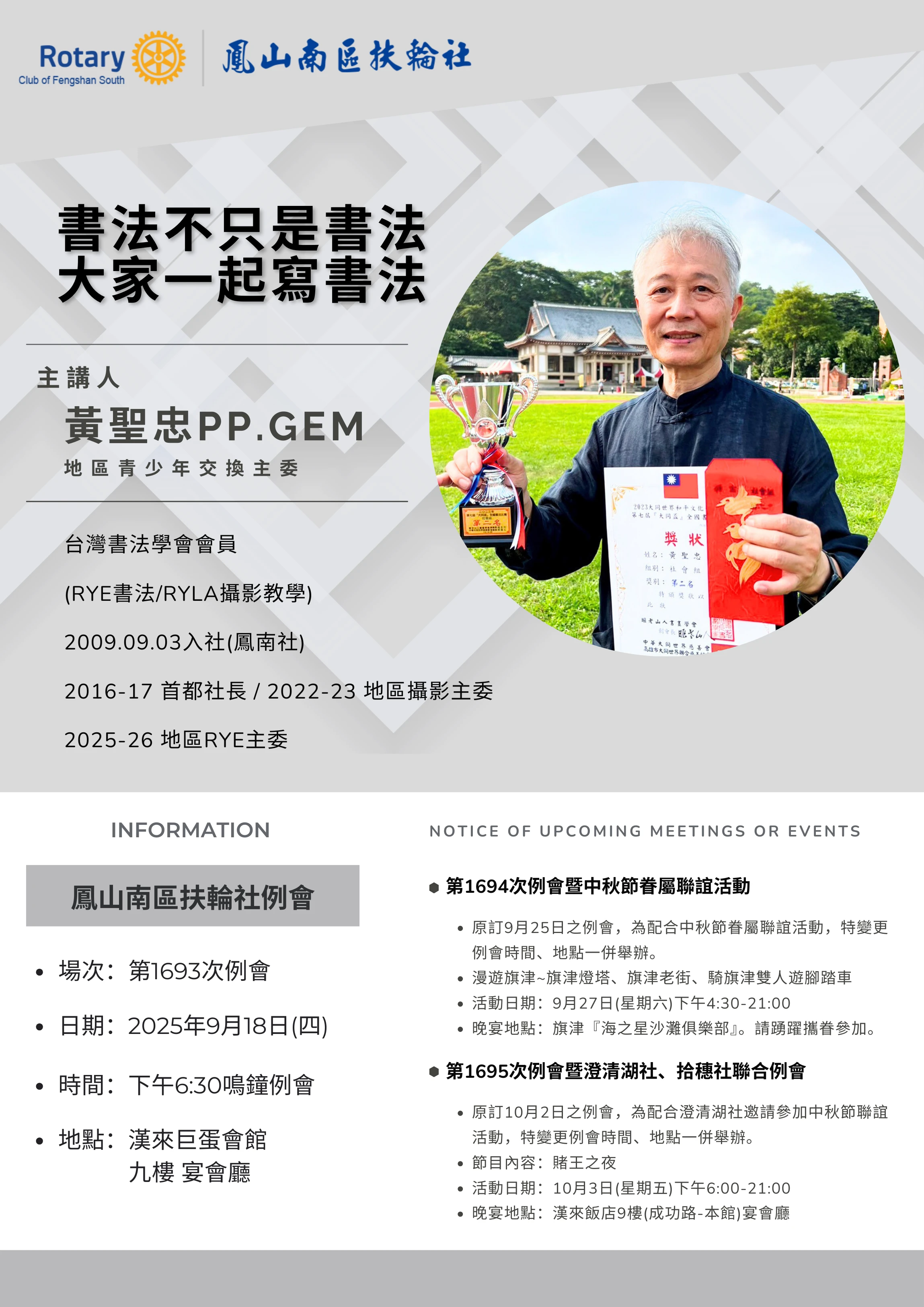 例會時間:每週四下午18:30