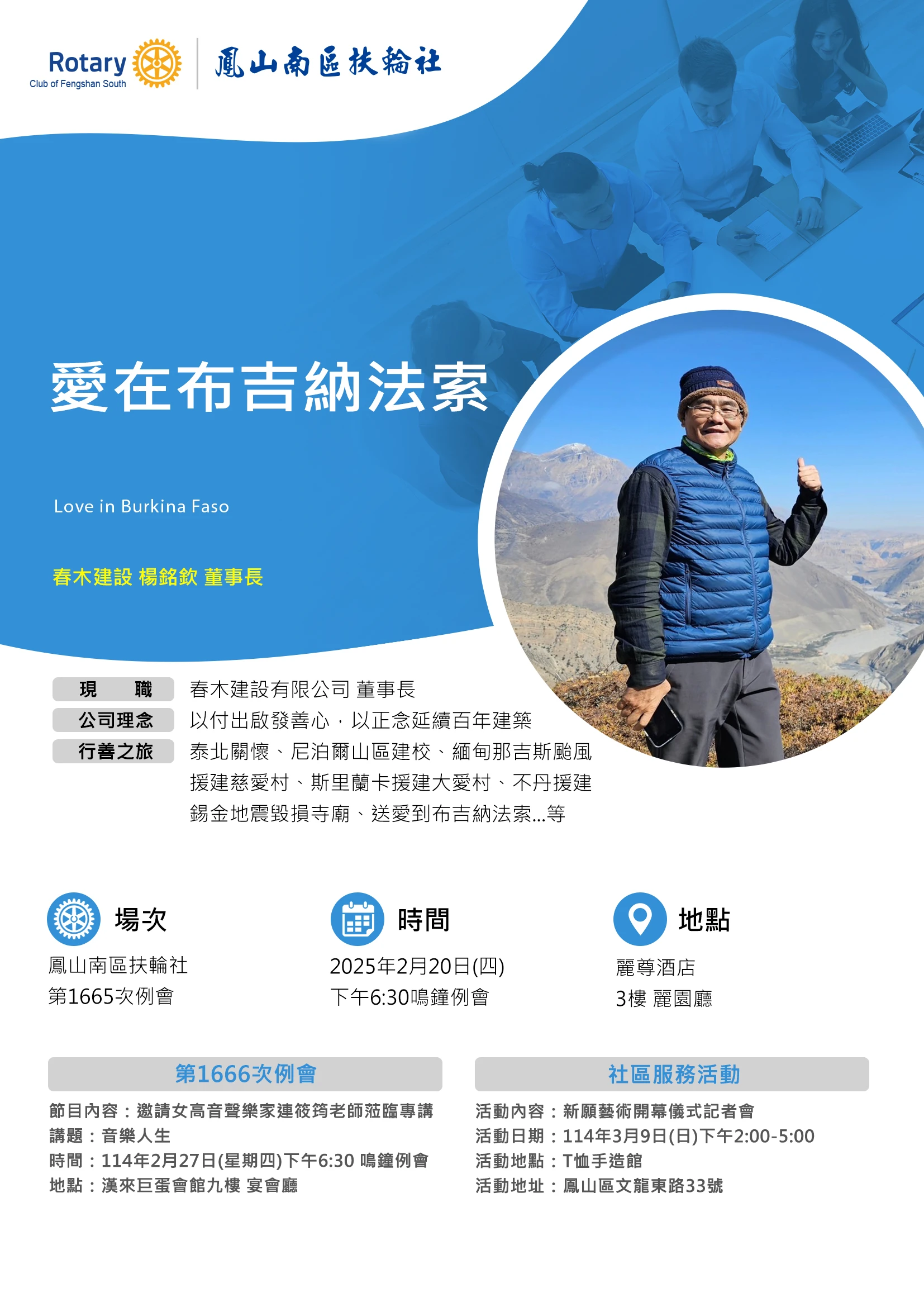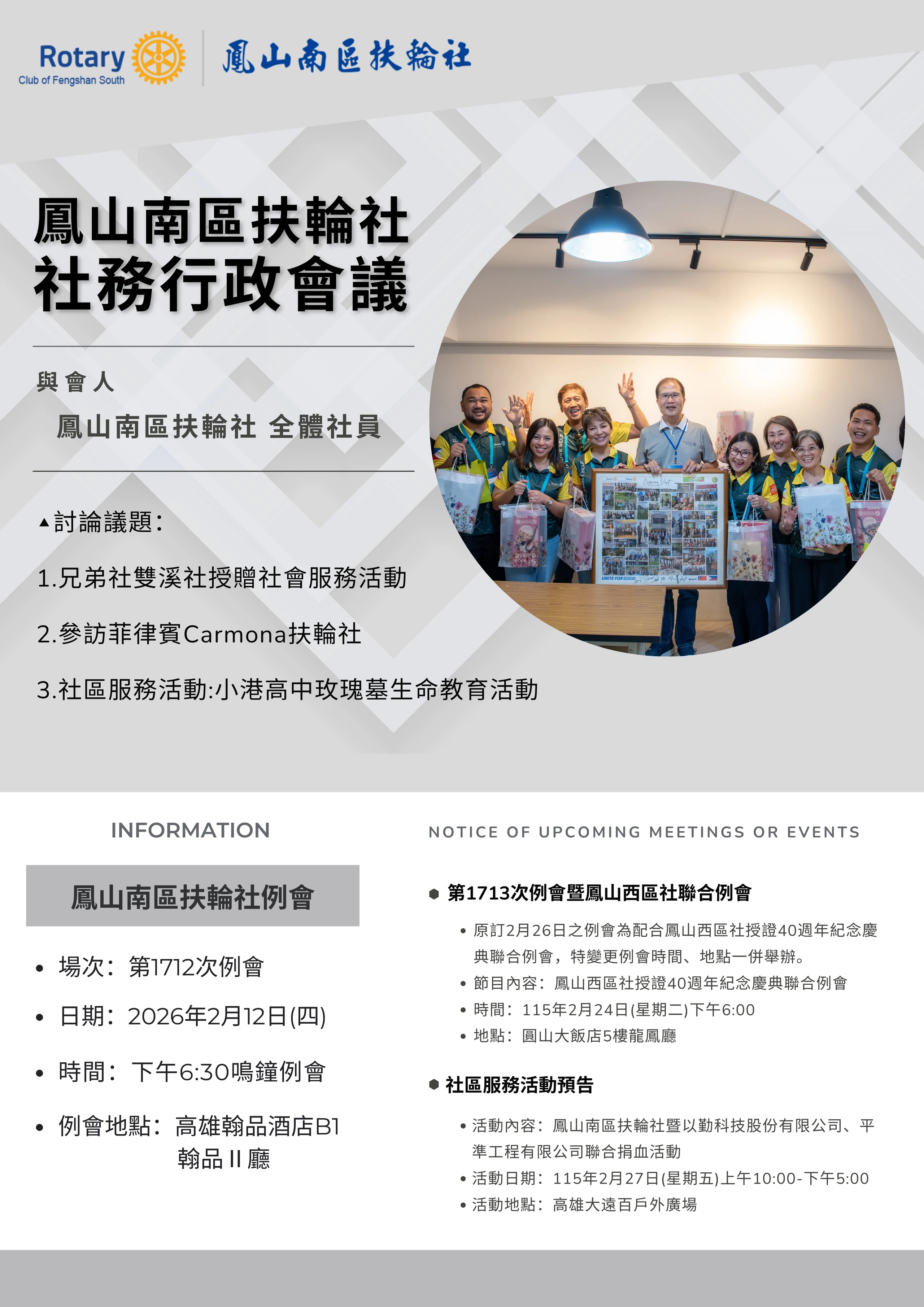 例會時間:每週四下午18:30