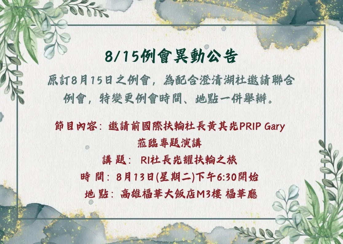 原8/15例會異動公告