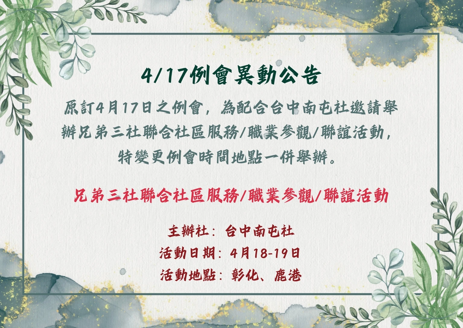原4/17例會異動公告