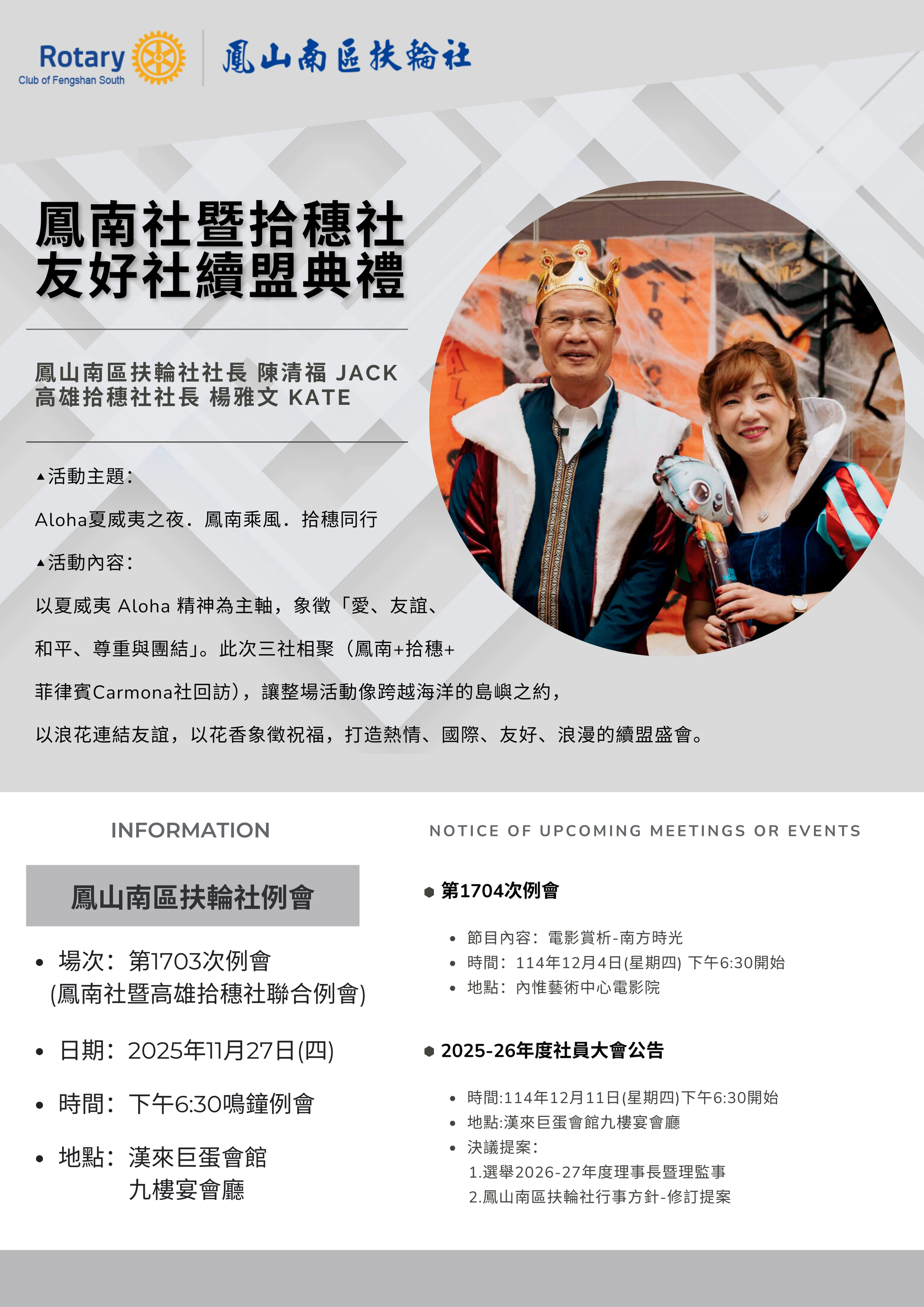 11/27(四)鳳南社暨拾穗社 友好社續盟典禮